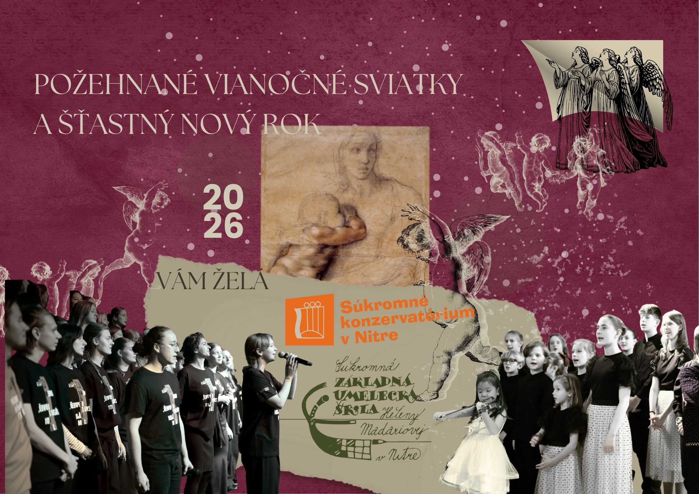 V tomto sviatočnom období by som sa chcela zo srdca poďakovať všetkým, ktorí sú súčasťou našej umeleckej komunity – žiakom, rodičom, pedagógom, absolventom, priaznivcom a všetkým, ktorí s nami zdieľajú lásku k umeniu. Vďaka Vašej podpore, dôvere a záujmu má naša práca zmysel a naše školy sú miestom, kde sa stretáva tvorivosť, vzdelávanie a ľudskosť.